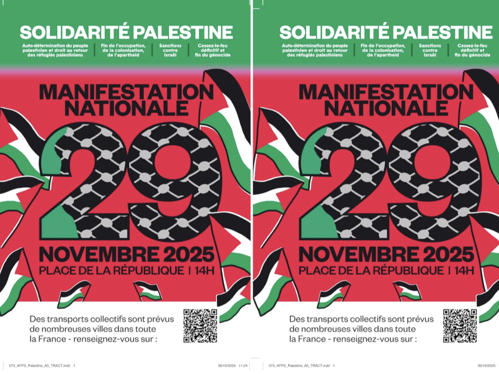 NON au GENOCIDE perpétré par l'Etat fasciste d'Israël: Manifestation à Paris le 29 novembre
