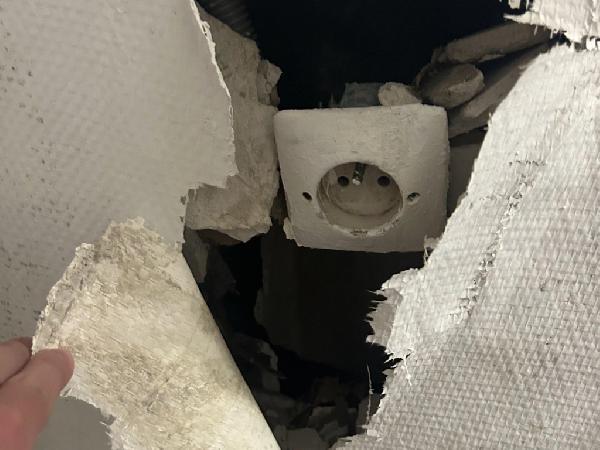 Mais la dégradation allait continuer à suivre son cours, puisque des parties de murs mêmes furent entamées, laissant par exemple des prises de courants pantelantes, ou des morceaux de placo tombant carrément dans la cuisine ou la salle de bains. Le locataire alerta rapidement la mairie de Villefontaine, ainsi que le bailleur social, début août. Aucune réponse !