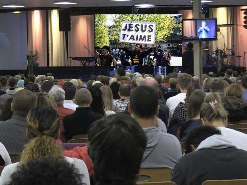 Face à lui, des pasteurs qui se mettent en scène style one man's show, avec son et lumière, de la transe, des structures d'entreprise de télévangélistes avec influenceurs et prosélytisme
